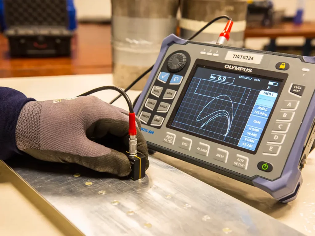 Sound waves penetrate metal to detect internal flaws or thickness variations. Technicians measure reflection signatures to highlight cracks.